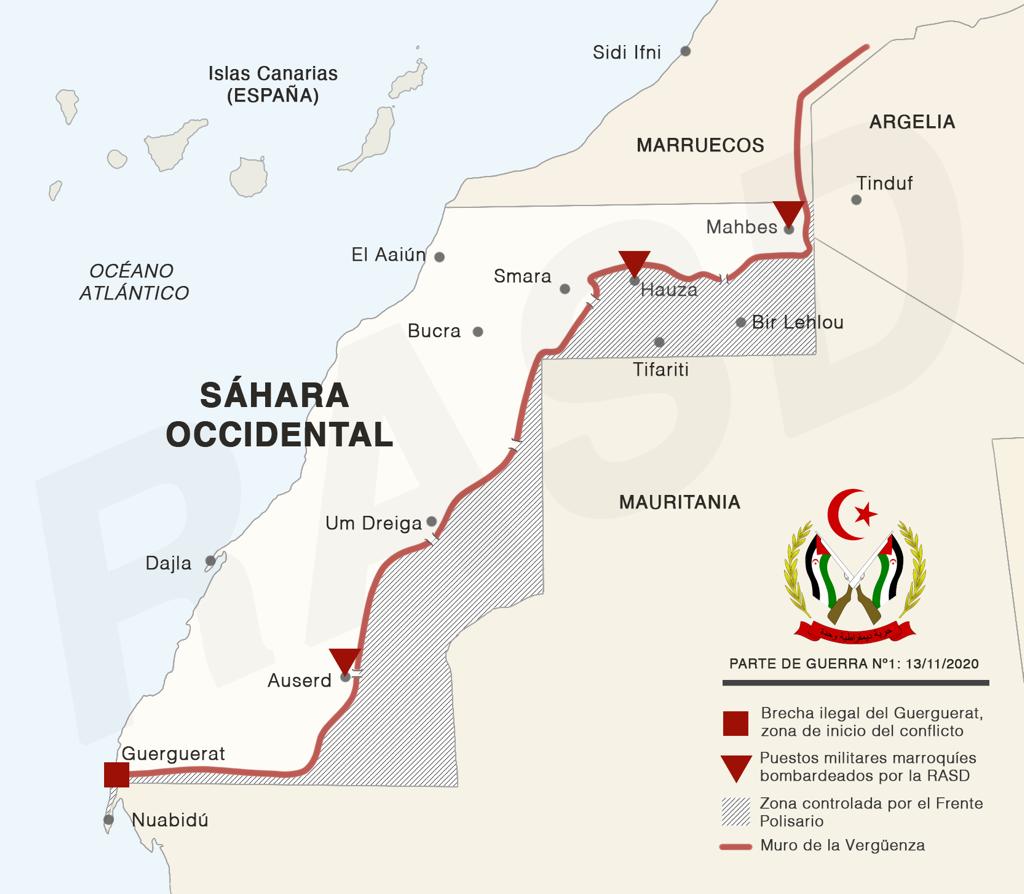 El alto al fuego vigente en el Sahara Occidental desde 1991 ha saltado por los aires el 13 de noviembre. Luego de que la monarquía marroquí lanzara un ataque militar en contra de manifestantes saharauis que bloqueaban la carretera de Guerguerat, que atraviesa cinco kilómetros de una zona de separación.