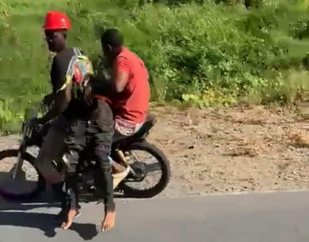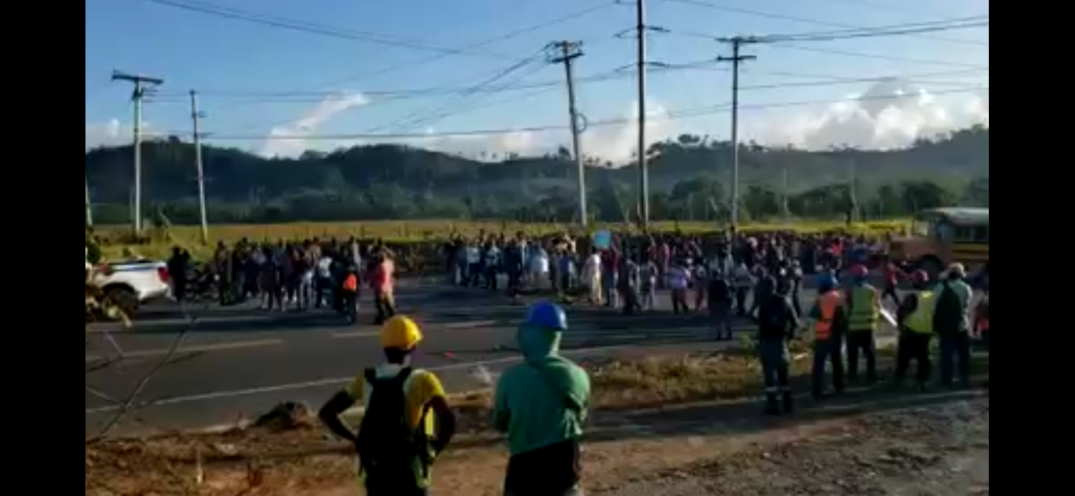 Imagen: Captura de video de la protesta en Miches, se puede apreciar a un grupo de trabajadores que no participa en la protesta y espera al borde de la carretera. La PN disparó contra ellos, asesinando al obrero Jonas Dezameau.