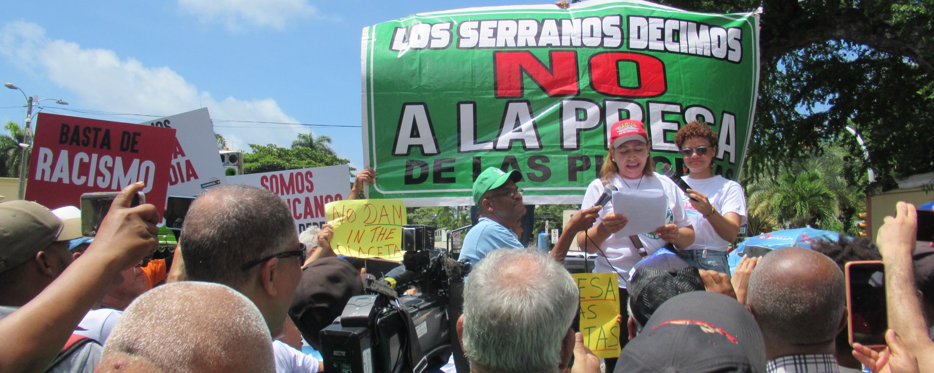 Ante la convocatoria de la Red Socioambiental y la Coordinadora Popular Nacional, así como decenas de organizaciones, más de dos mil activistas comunitarios, ambientalistas, sociales y populares de todas las regiones del país se concentraron el 4 de junio frente al Palacio Nacional para protestar contra la depredación ambiental que impulsa el gobierno nacional de la mano del capital nacional y transnacional. La rabia e indignación popular se hizo sentir en consignas como “¡El agua vale más que el oro!”, “¡No a la privatización del agua!”, “¡Fuera la barcaza de los Negros de Azua!” y «¡Loma miranda, parque nacional!».