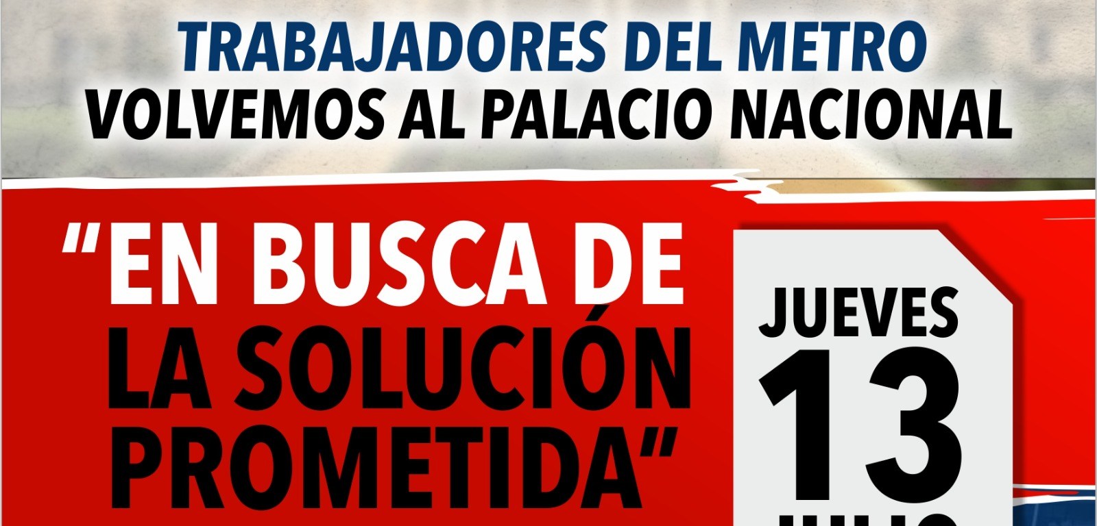 A dos semanas de la marcha del 28 de junio, nuevamente las y los trabajadores del Metro saldrán a las calles en defensa de sus derechos, contra las cancelaciones arbitrarias y por el respeto a la libertad sindical. La marcha será el jueves, 13 de julio a las 9 am, saliendo de la estación Juan Pablo Duarte, en la Av. Gómez con Av. Kennedy rumbo al Palacio Nacional. Así lo anunciaron en una rueda de prensa este lunes los dirigentes obreros del Metro.