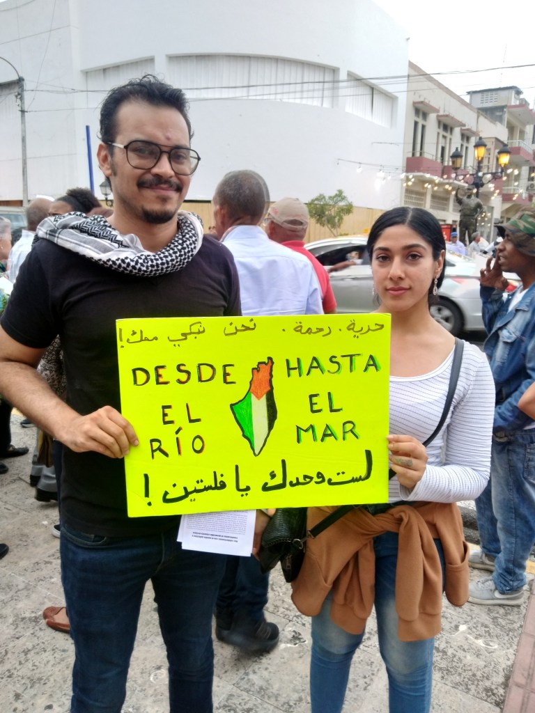 Convocados bajo la consigna «Solidaridad Dominicana con Palestina», integrantes de varias organizaciones, entre ellas el Frente Amplio, PCT, MRS, MST, la Coordinadora Popular Nacional, Alianza País y OD, así como jóvenes independientes, corearon consignas como «Israel asesino, mata niños palestinos», «Gaza resiste, Palestina existe» y «Viva Palestina libre». Al caer la noche, se encendieron velas en homenaje a las miles de vícimas palestinas del fascismo israelí.