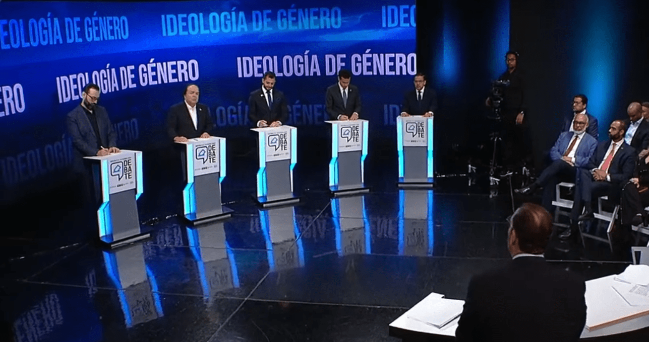 Los demás candidatos de la derecha al Senado y la Cámara de Diputados estuvieron de acuerdo en promocionar las teorías conspirativas del “globalismo” y la “ideología de género”, y oponerse al derecho de las mujeres a decidir la interrupción del embarazo en condiciones extremas, convirtiendo el debate en un circo espeluznante en el que competían por hacer las afirmaciones más estrafalarias. Vinicio Castillo afirmó que “la ONU” promovía una “educación sexual depravada” y el candidato a diputado por el mismo partido, el PRSC, Misael Guzmán, se opuso a cualquier tipo de educación sexual antes de los 18 años. Priyanka Rodríguez de la FNP propuso crear un Ministerio de la Familia y afirmó que el “globalismo fracasó”, sin explicar qué quería decir. Charlie Mariotti, candidato a diputado por el PLD, admitió que el país tiene una de las tasas de embarazo adolescente más altas de la región, estuvo a favor de las tres causales pero también dijo oponerse a la “ideología de género”. Rafael Paz de la FP trató de elaborar un poco más la teoría conspirativa y habló de injerencia extranjera “activa” y “pasiva”, ubicando a la “ideología de género” como “injerencia pasiva” para transformar la cultura y la identidad dominicana. Quién lo haría, de qué forma o con qué propósito, no lo dijo.